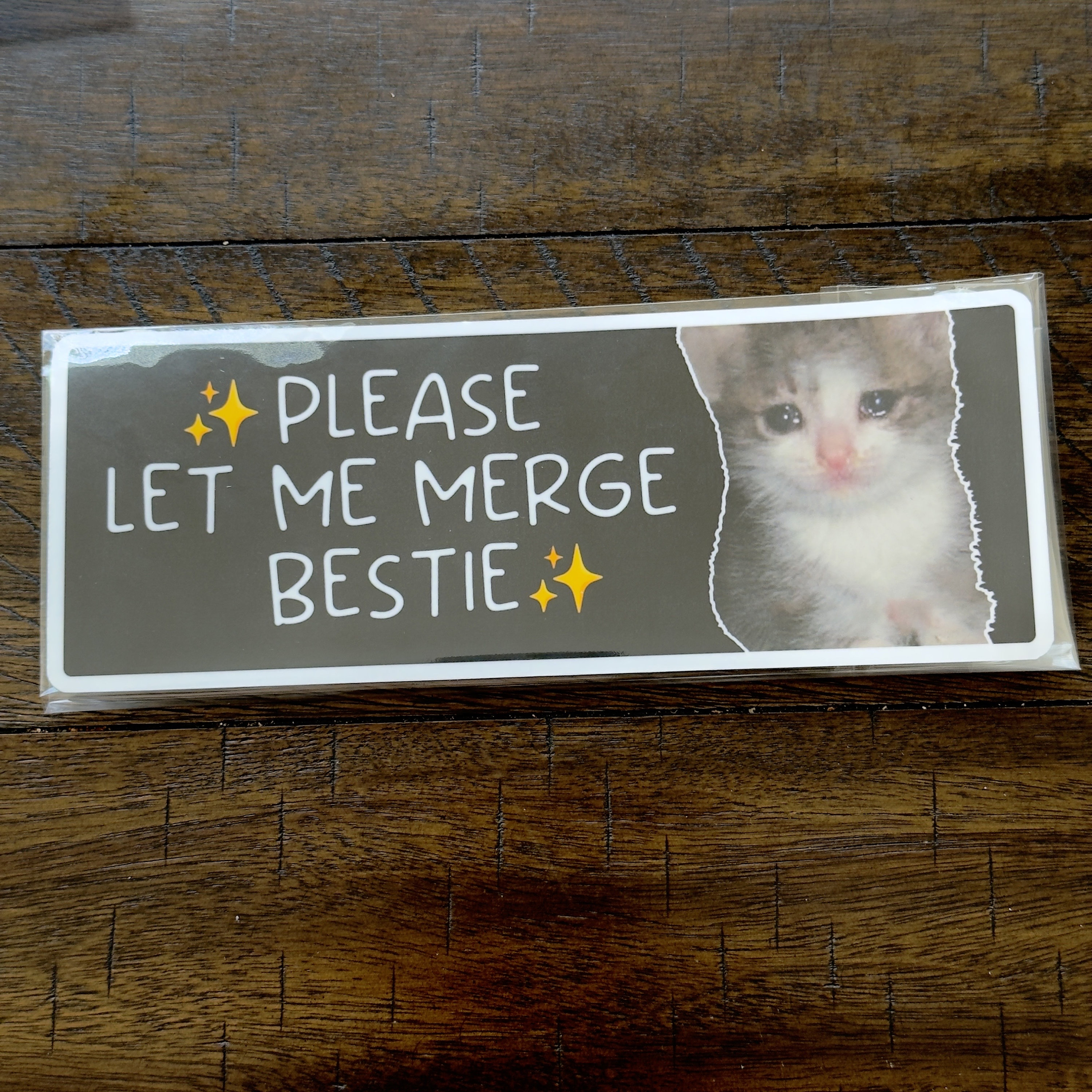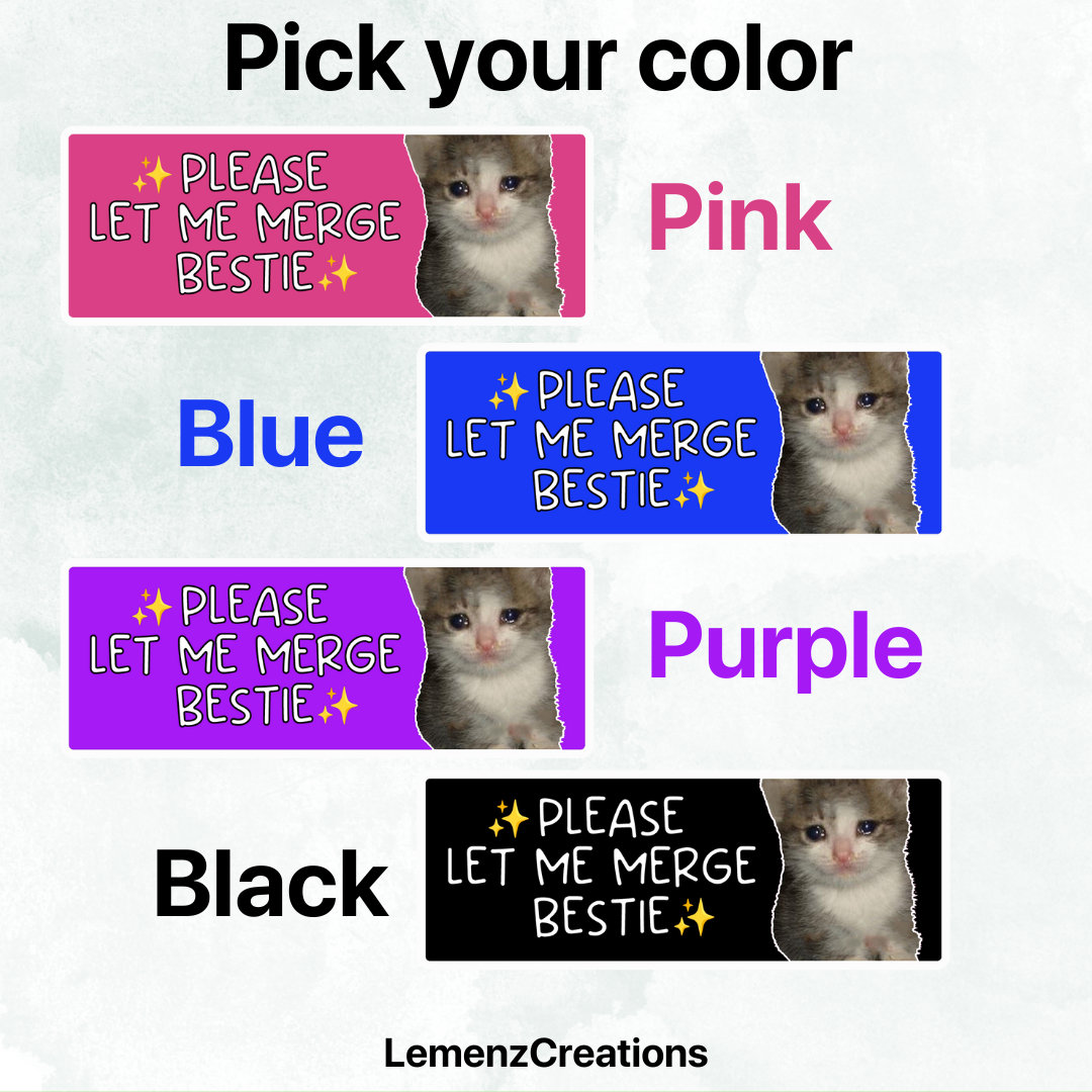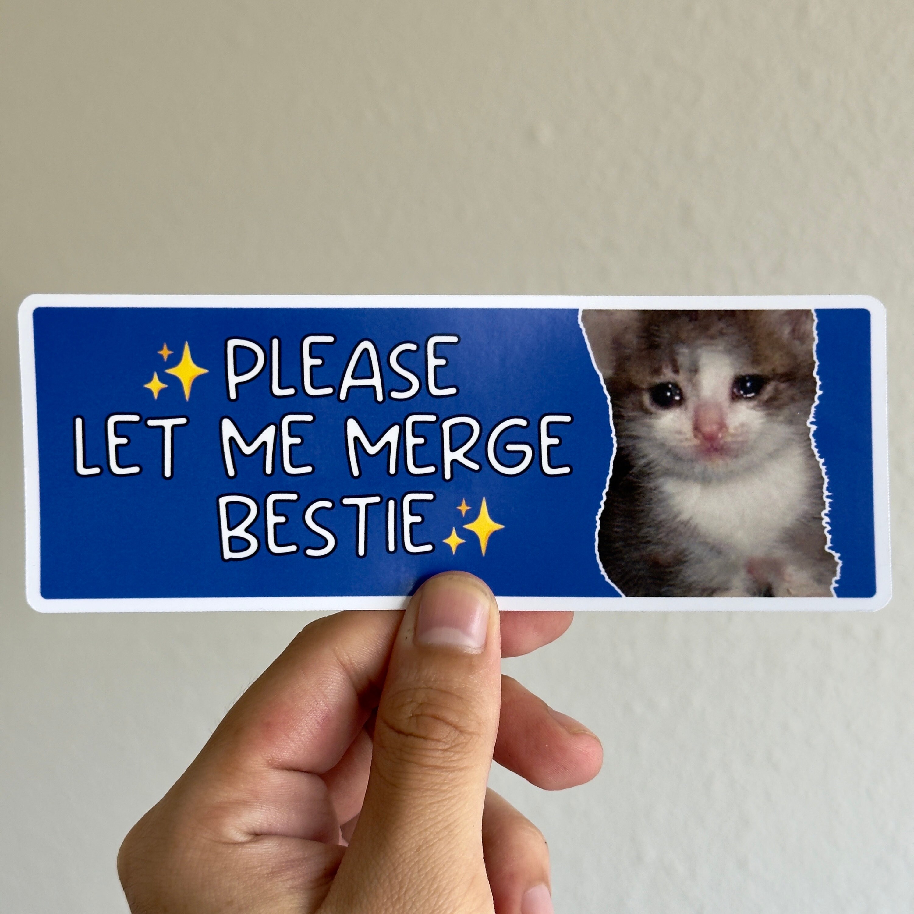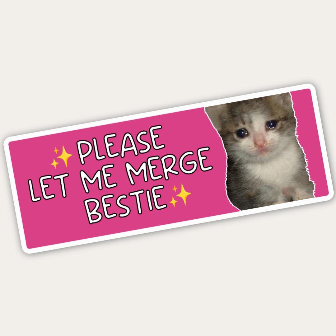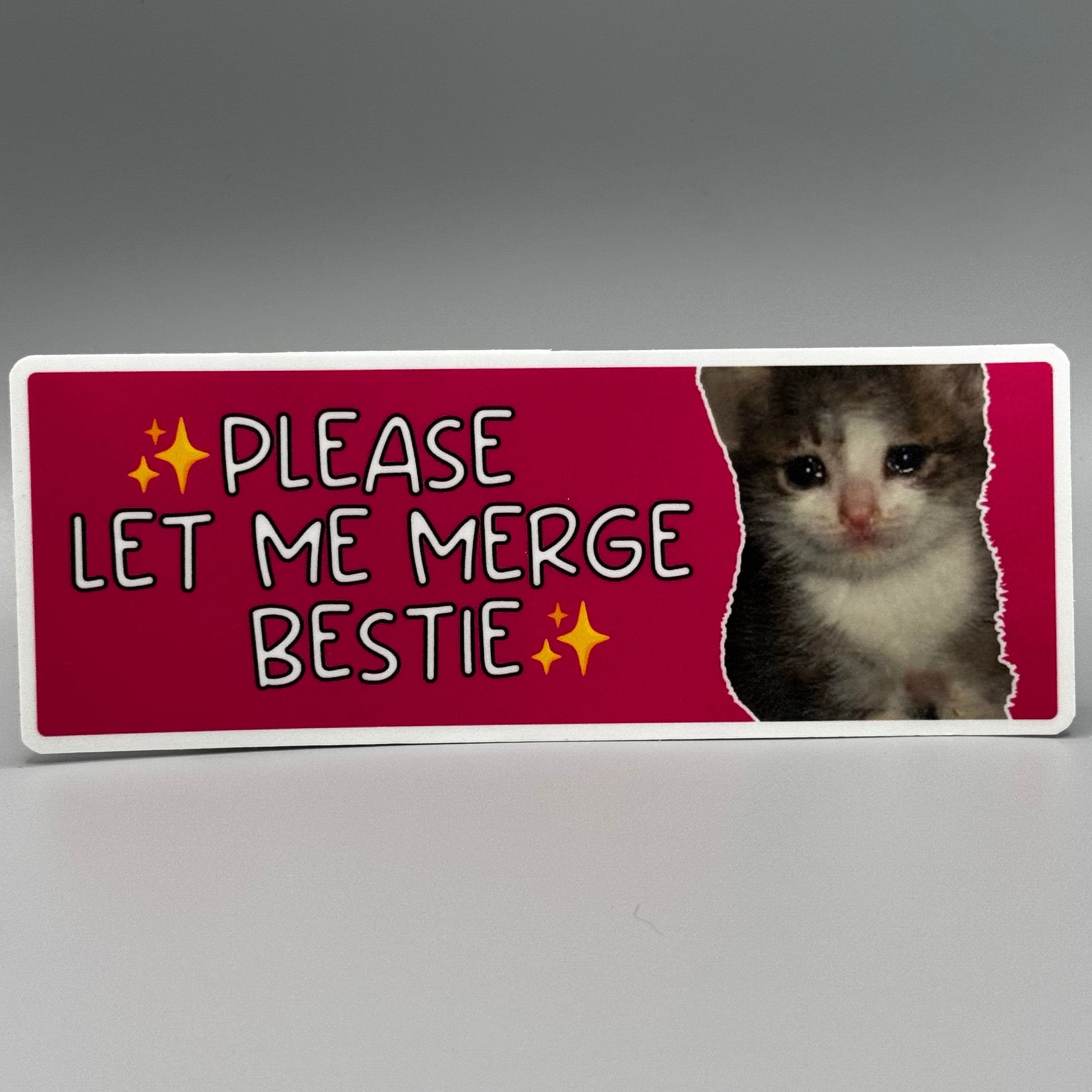 Looking for a humorous way to navigate the roads with your fellow drivers? Our "Please Let Me Merge Bestie" bumper sticker adds a lighthearted touch to your vehicle! Made from high-quality vinyl, this fun sticker is designed to withstand the elements, ensuring your ride looks stylish while spreading positivity on the road.