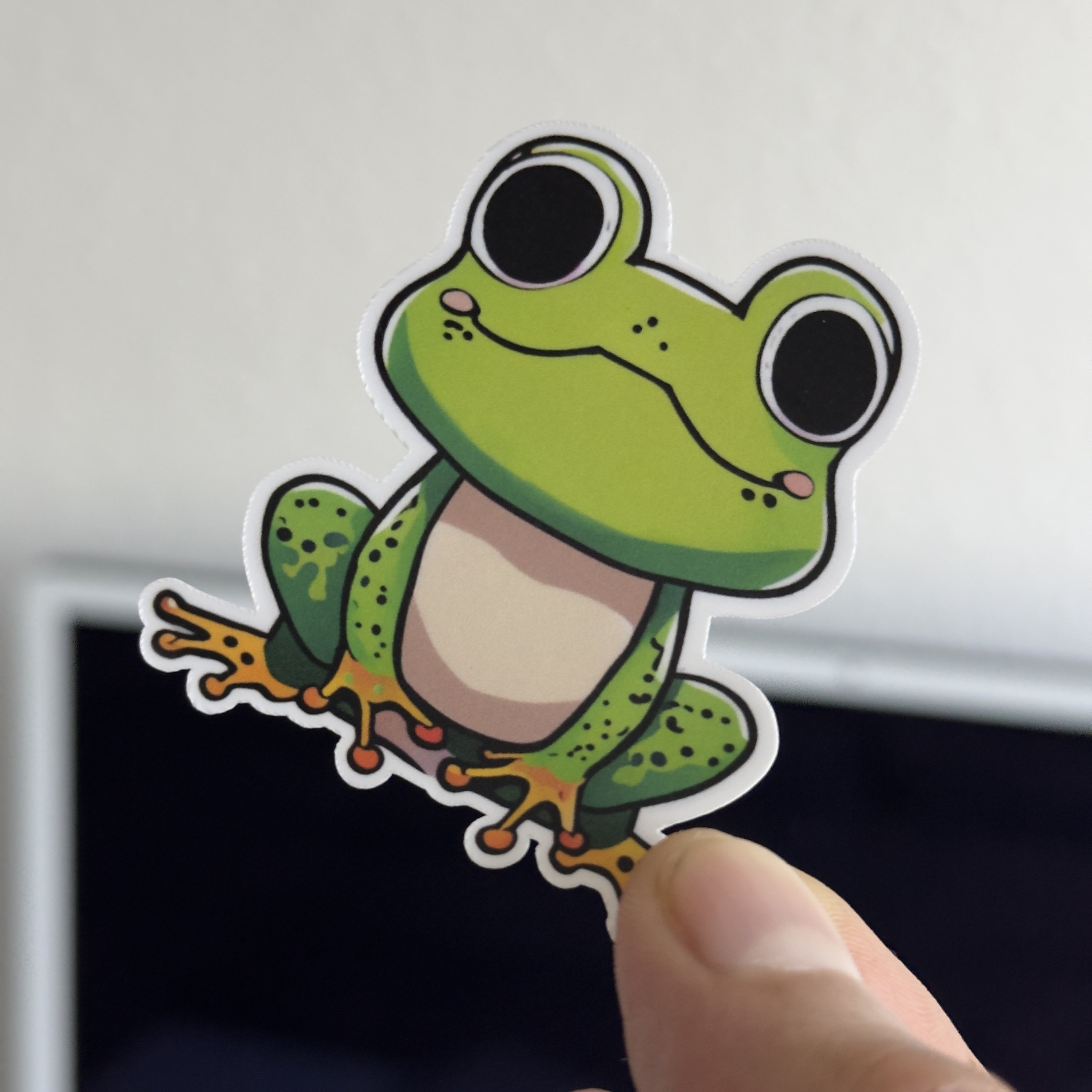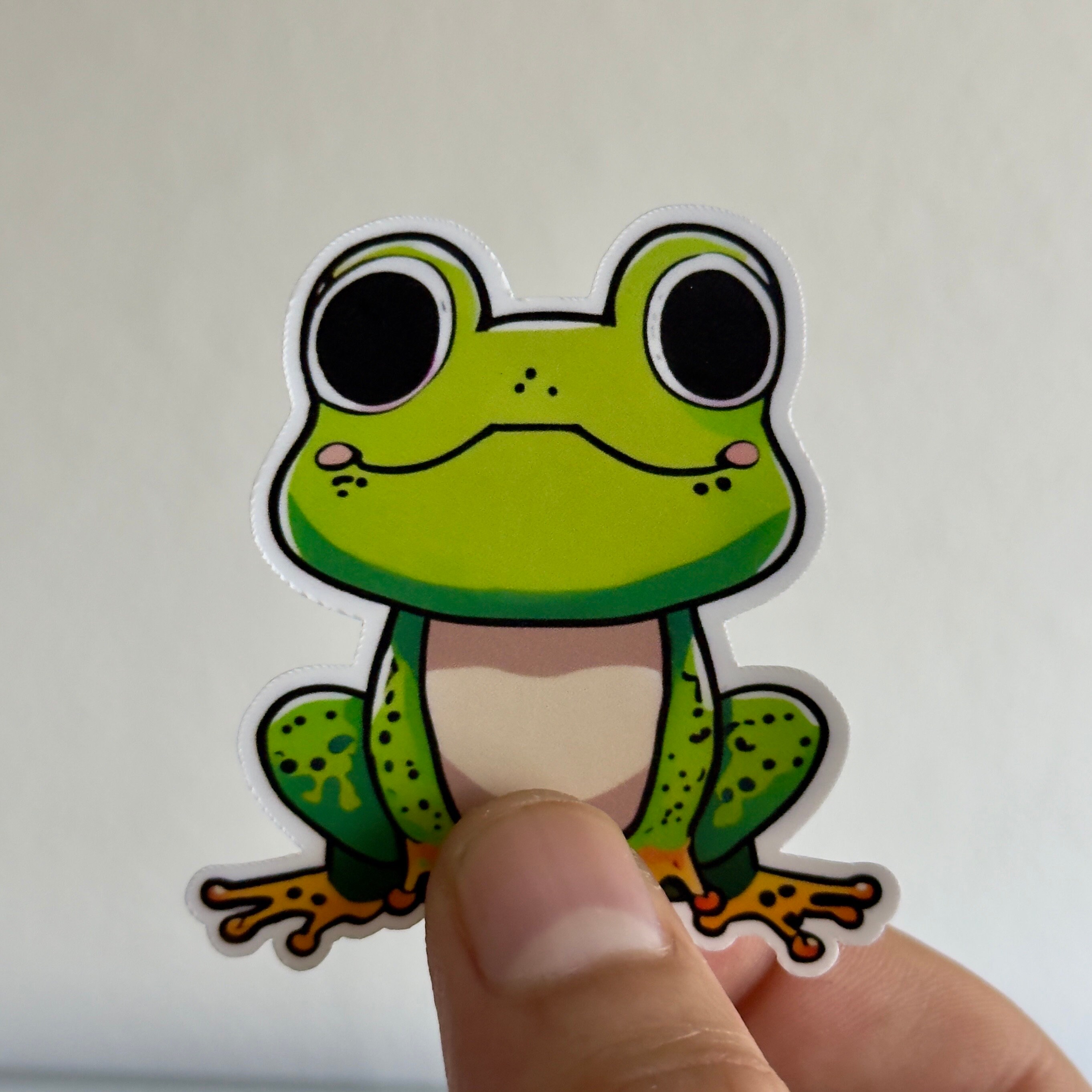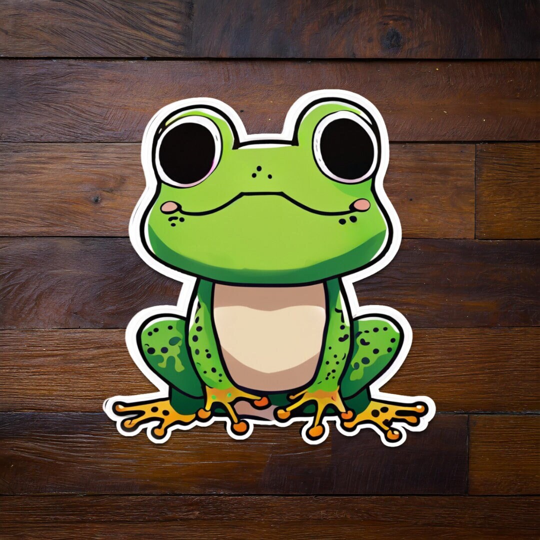 Crafted with love and attention to detail, this sticker features a vibrant and lively frog design that is sure to bring a smile to your face. Its playful expression and expressive eyes make it a joy to behold.