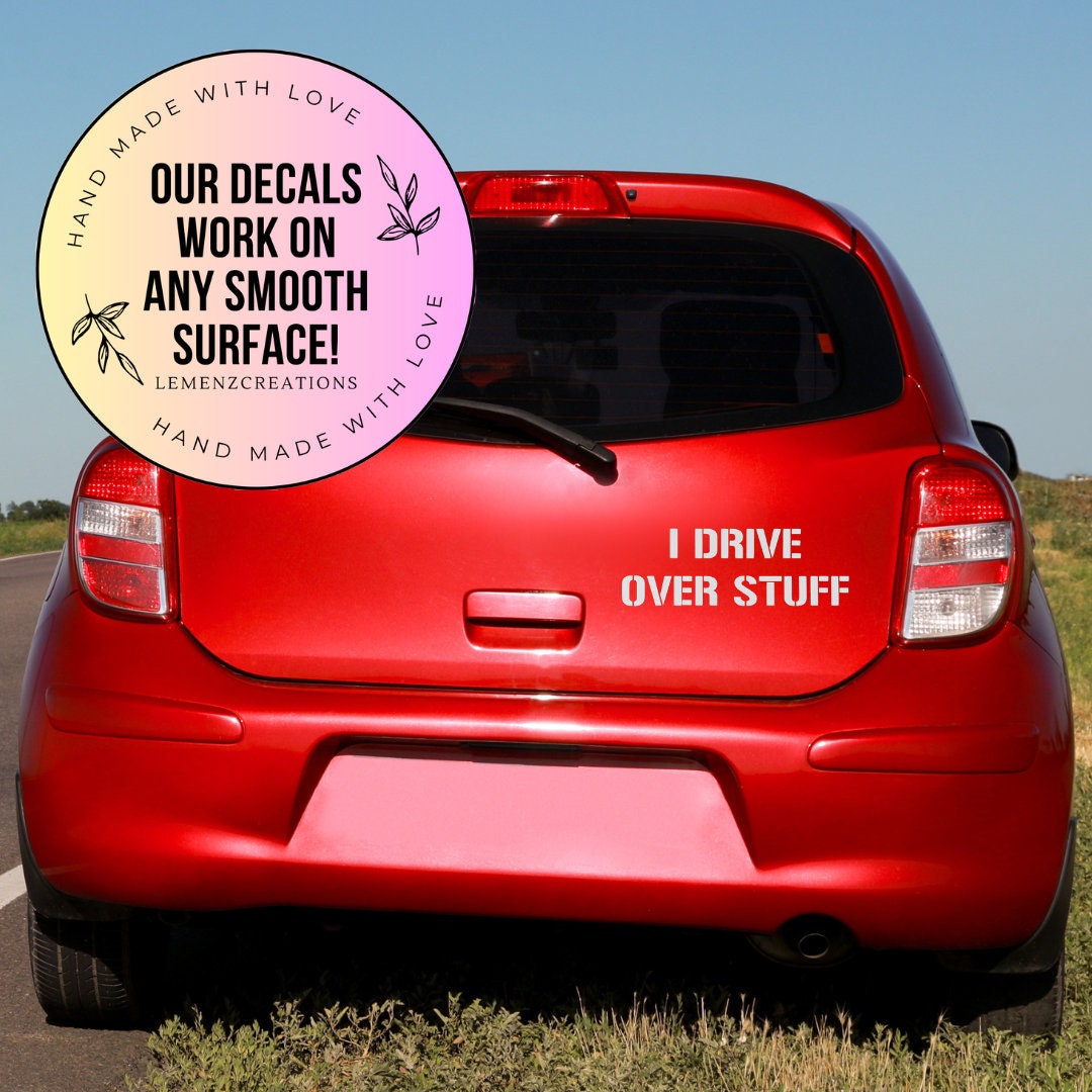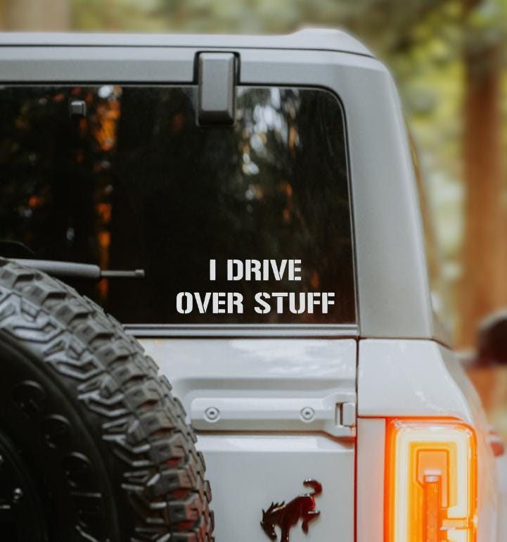 Add a touch of humor and adventure to your ride with our "I Drive Over Stuff" car decal! Perfect for car enthusiasts and off-road adventurers, this bold decal expresses your love for tackling rugged terrains and exploring the unknown.