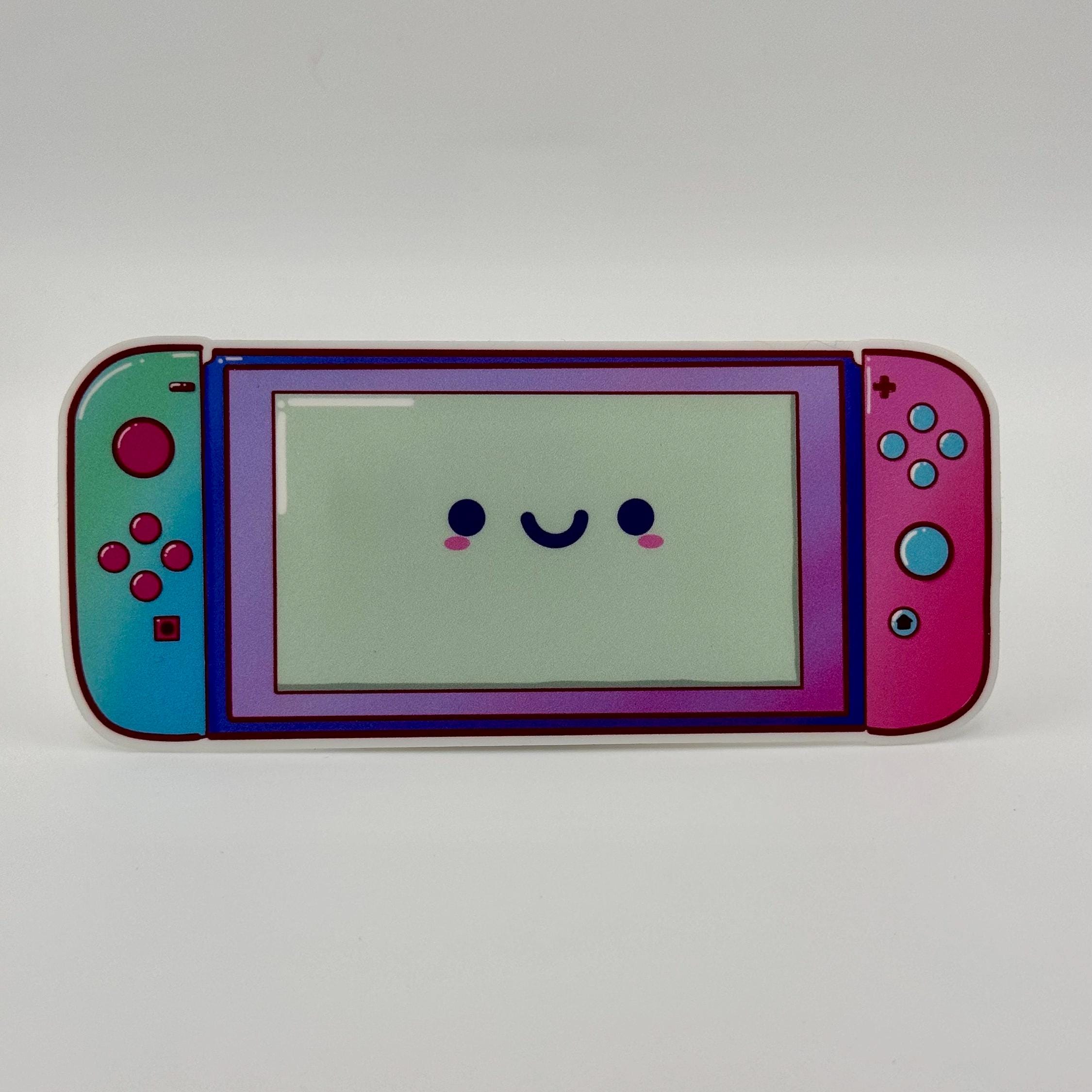 Level up your style with our Kawaii Gaming Console Vinyl Sticker – an irresistibly cute addition to your gaming gear. This adorable decal features a charming design inspired by a beloved handheld game system, adding a playful touch to your accessories. Perfect for gamers and sticker enthusiasts alike, our Kawaii Nintendo Switch Sticker is designed to bring joy and uniqueness to your personal items. Elevate your gaming experience with this eye-catching and distinctive vinyl decal.