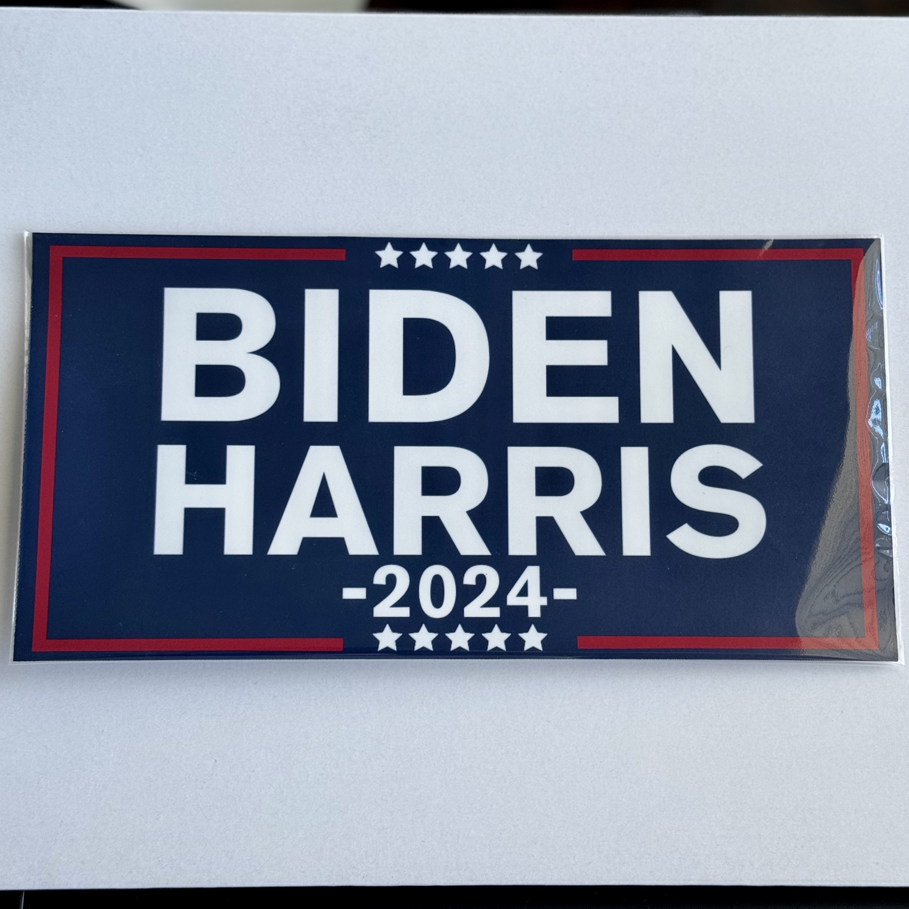 Show your support for the Biden Harris campaign with our high-quality "Biden Harris 2024" sticker! Perfect for cars, laptops, water bottles, and more, this durable vinyl sticker is a great way to express your political stance and promote the 2024 presidential campaign.