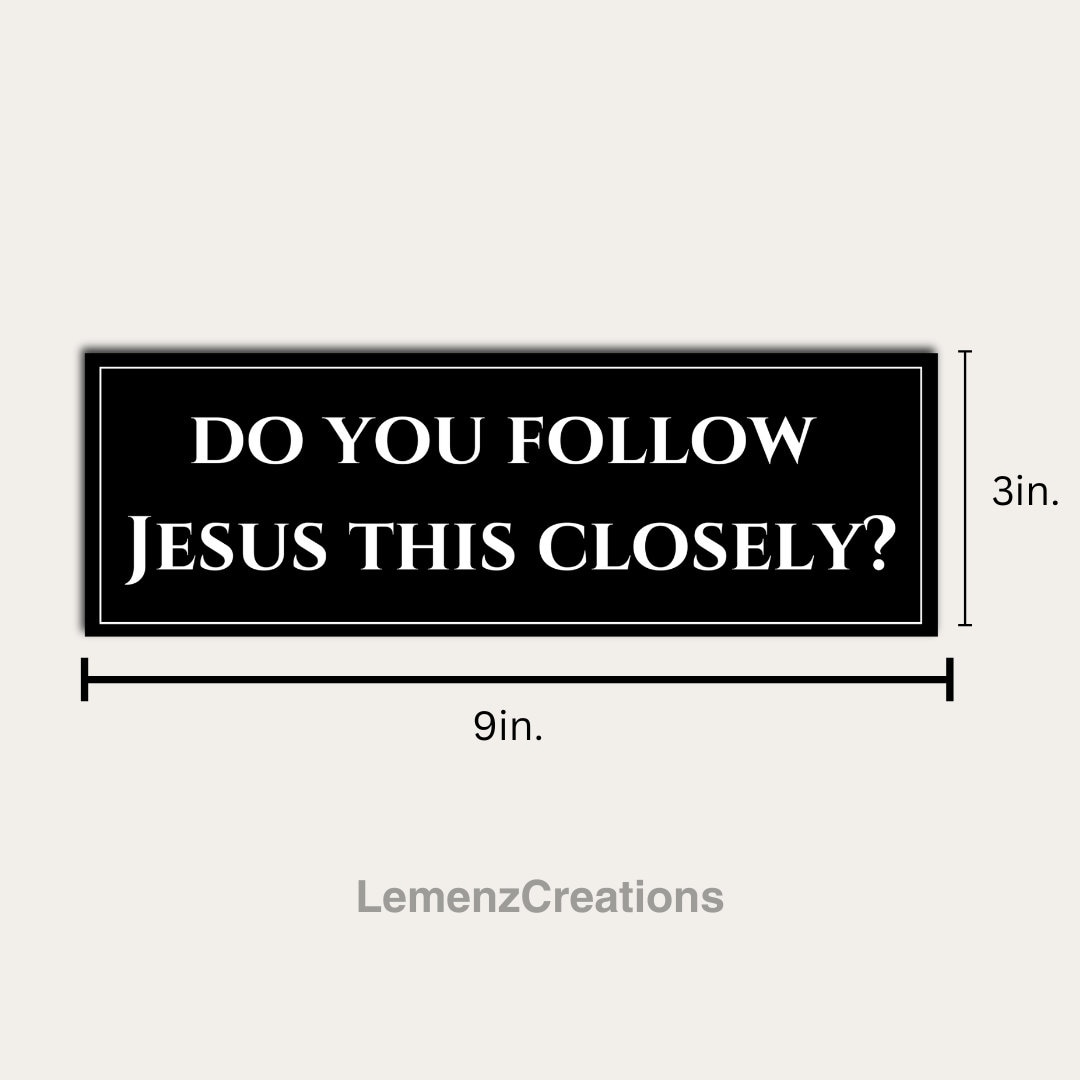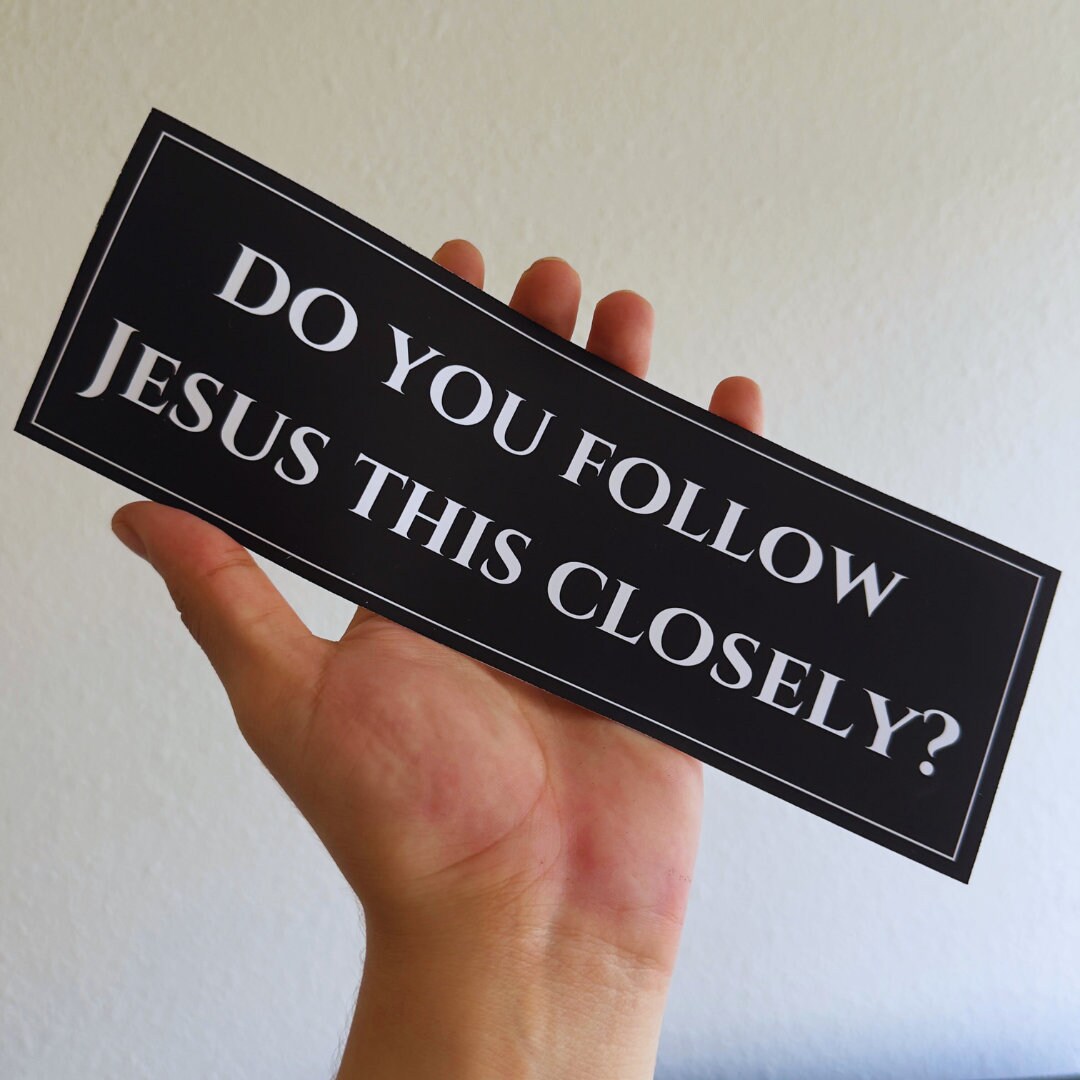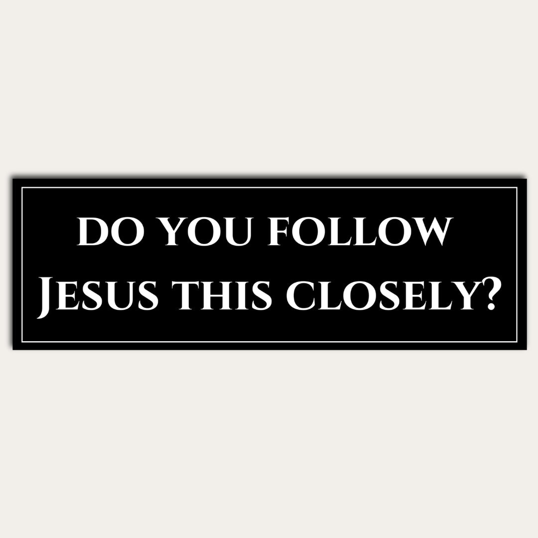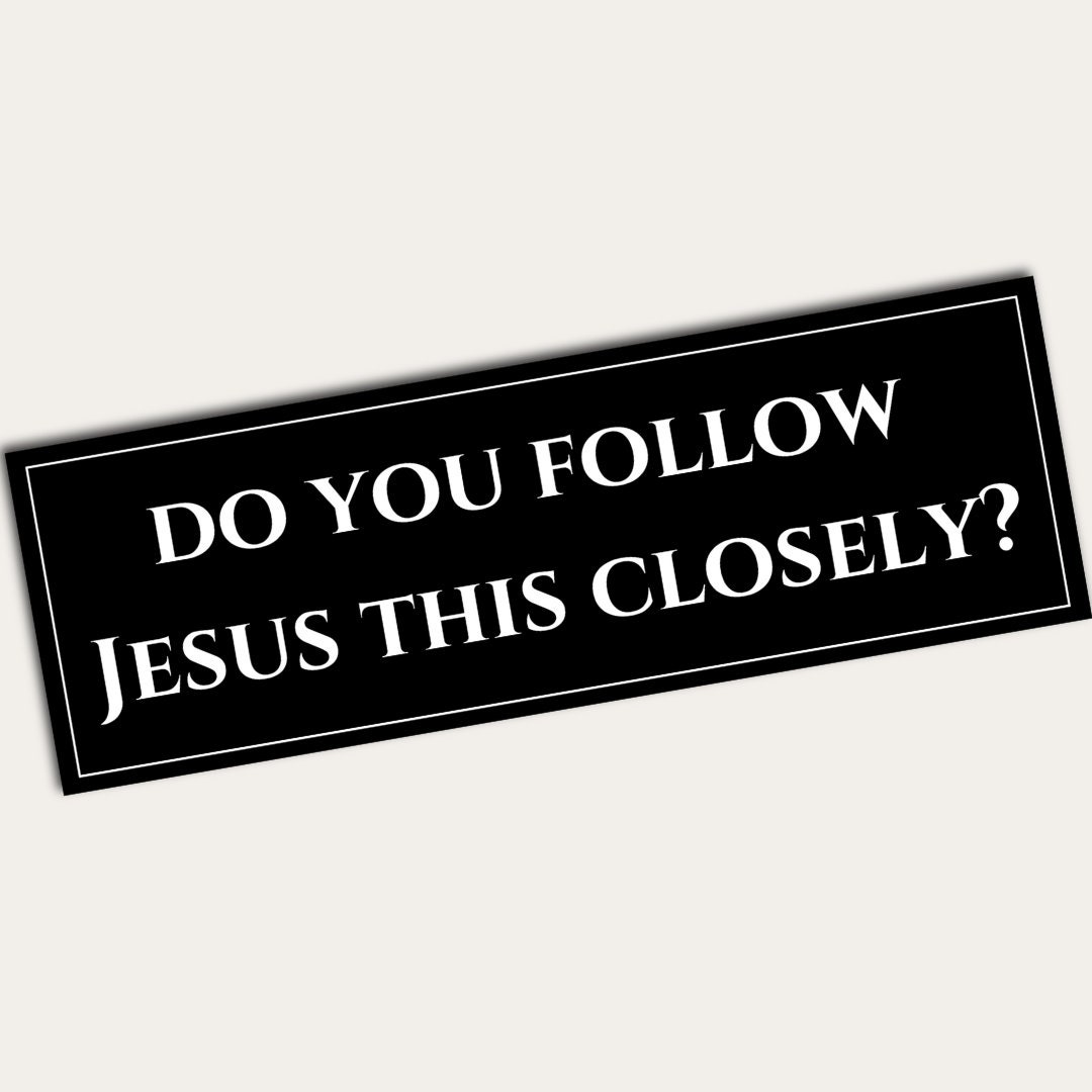 Add a touch of humor to your ride with this funny "Do You Follow Jesus This Closely?" bumper sticker! Perfect for keeping tailgaters at bay and giving fellow drivers a good laugh, this vinyl decal is a must-have for anyone who loves a good joke. Whether for your vehicle or as a hilarious gift for a friend, this sticker is sure to be a hit.