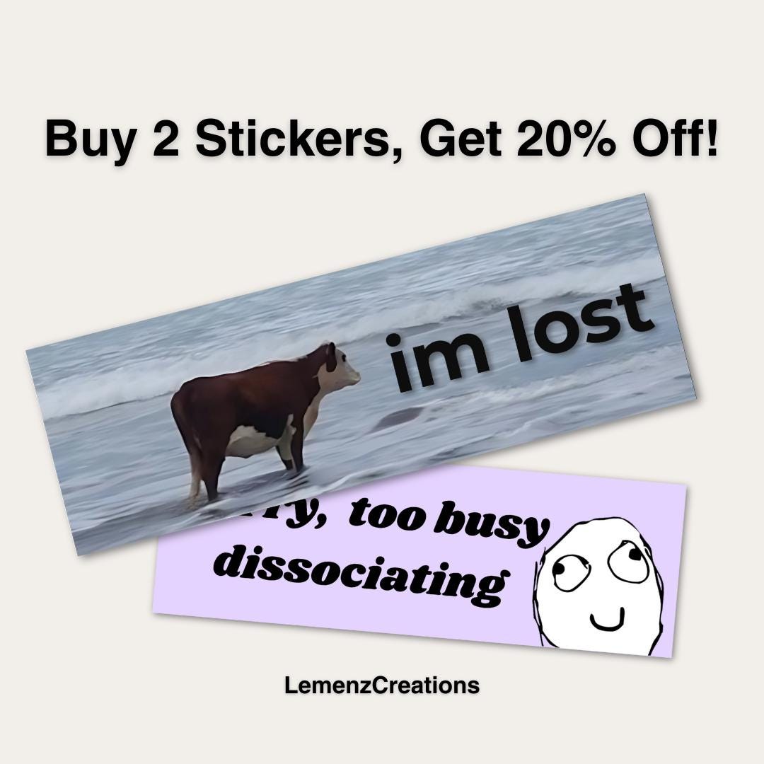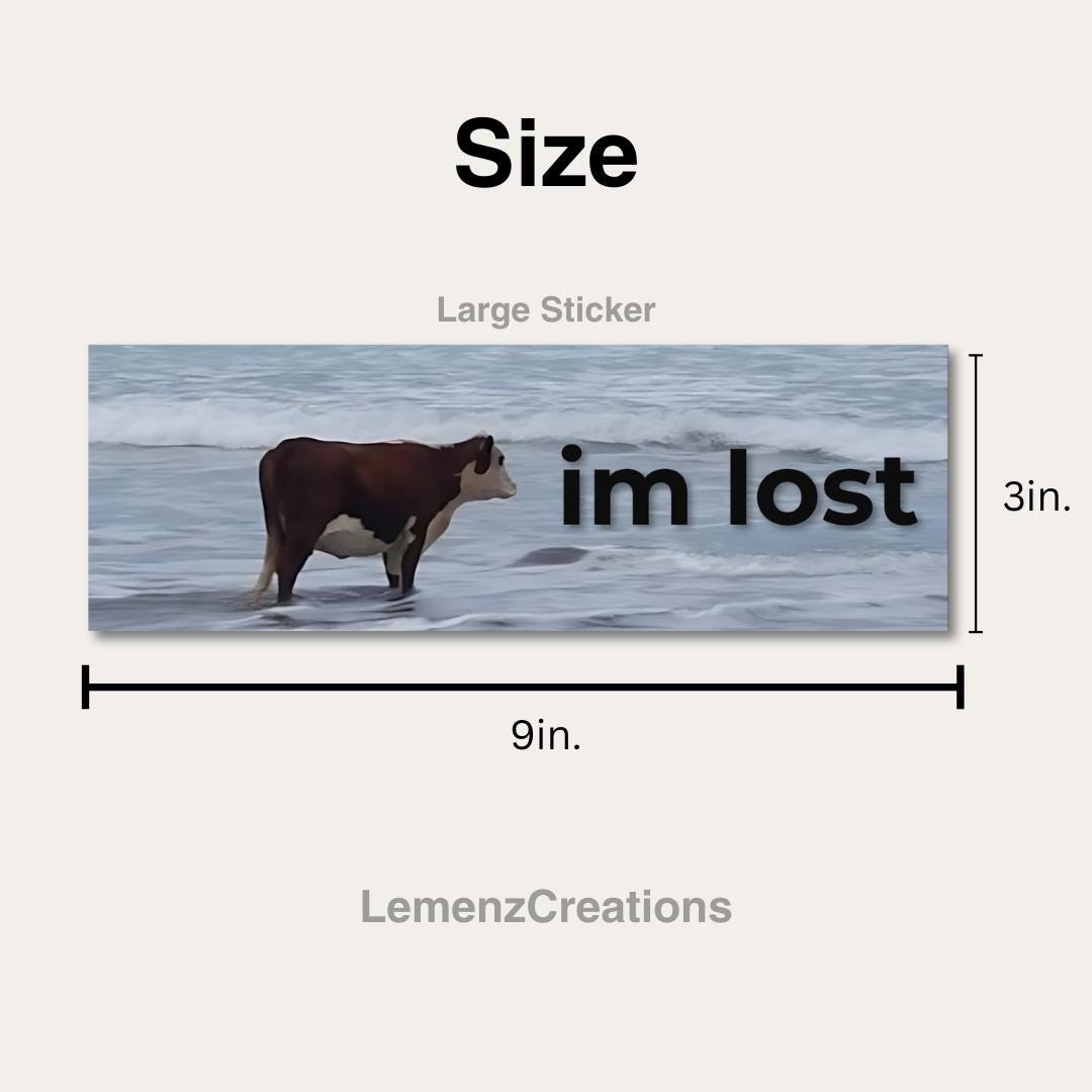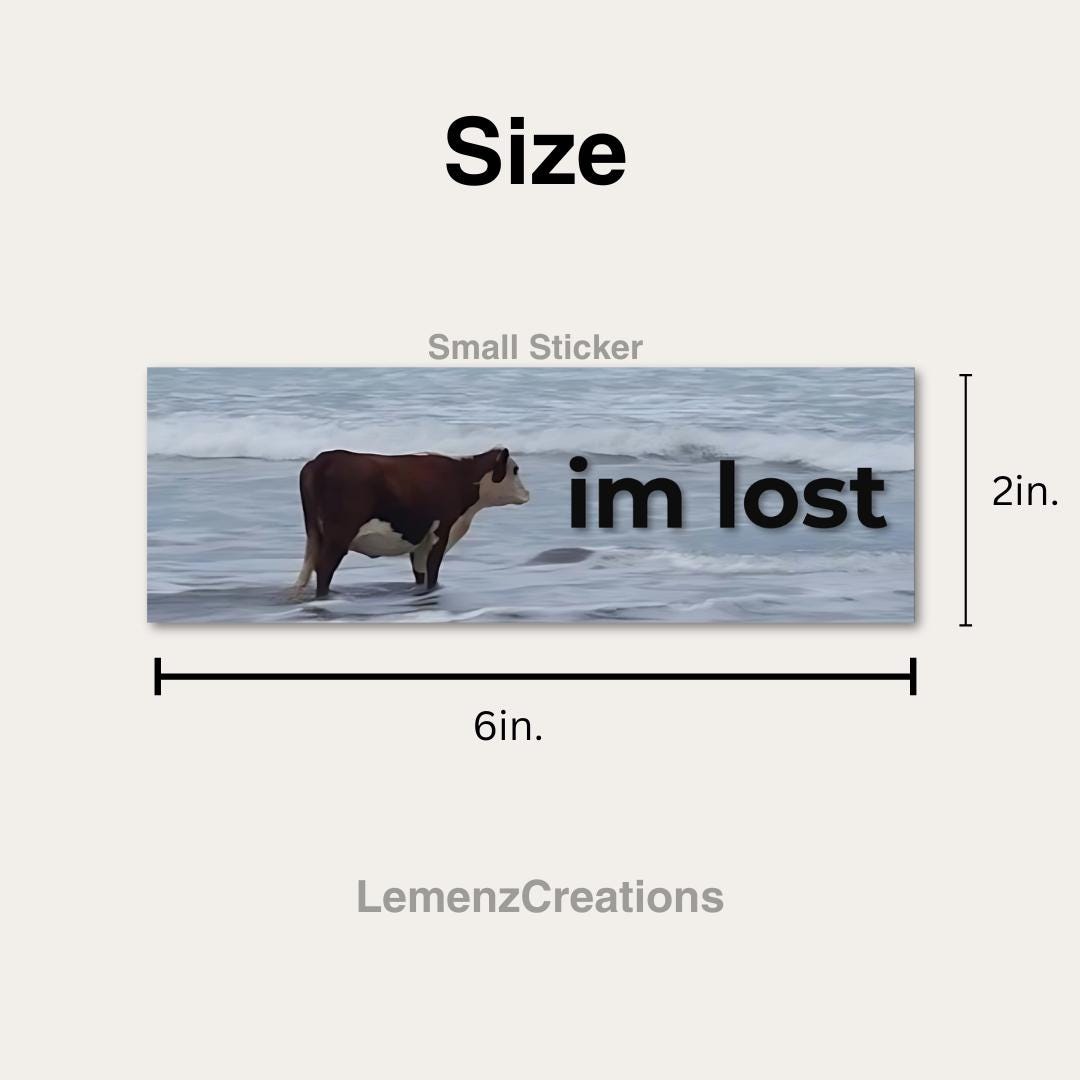 Looking to add a touch of humor to your car? Our "I'm Lost" bumper sticker featuring a hilarious cow gazing at the horizon is just the thing! This hilarious sticker is crafted from high-quality vinyl, ensuring it withstands the elements while keeping your ride stylish.