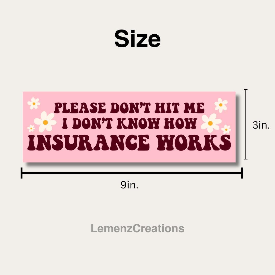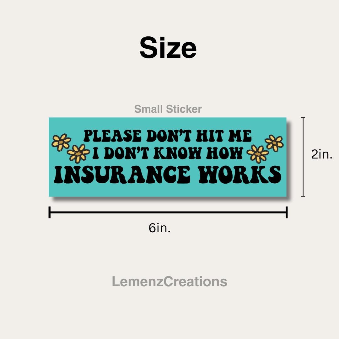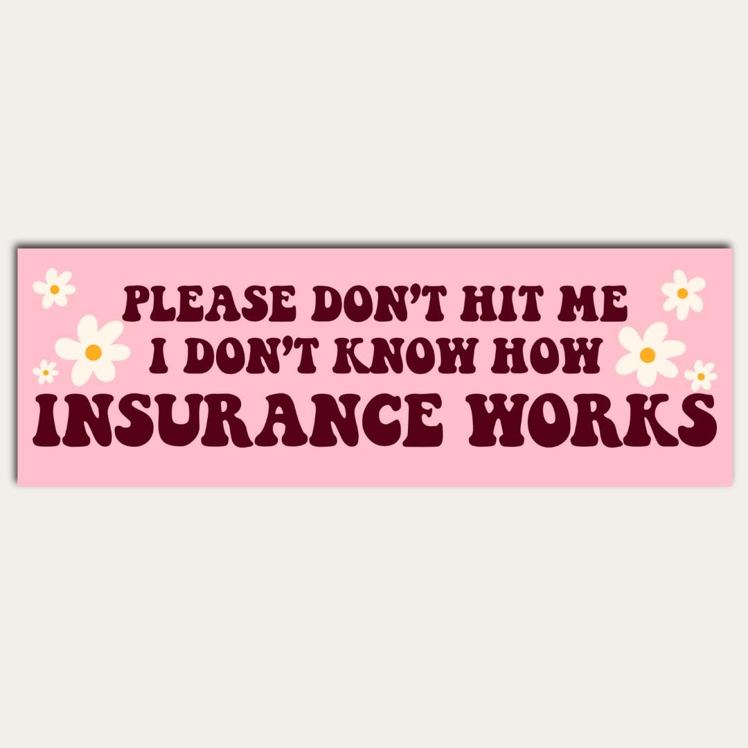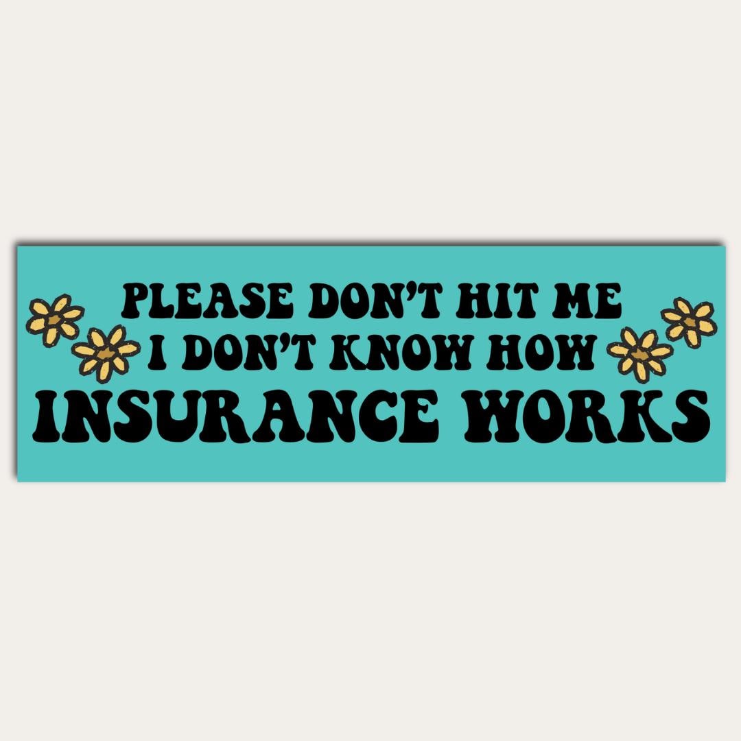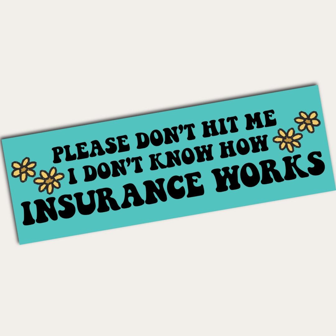 Add a dash of humor to your car with our funny bumper sticker: "Please don't hit me, I don't know how insurance works" Perfect for a laugh on the road, this high-quality vinyl sticker is designed to endure the elements while giving your ride a playful touch.