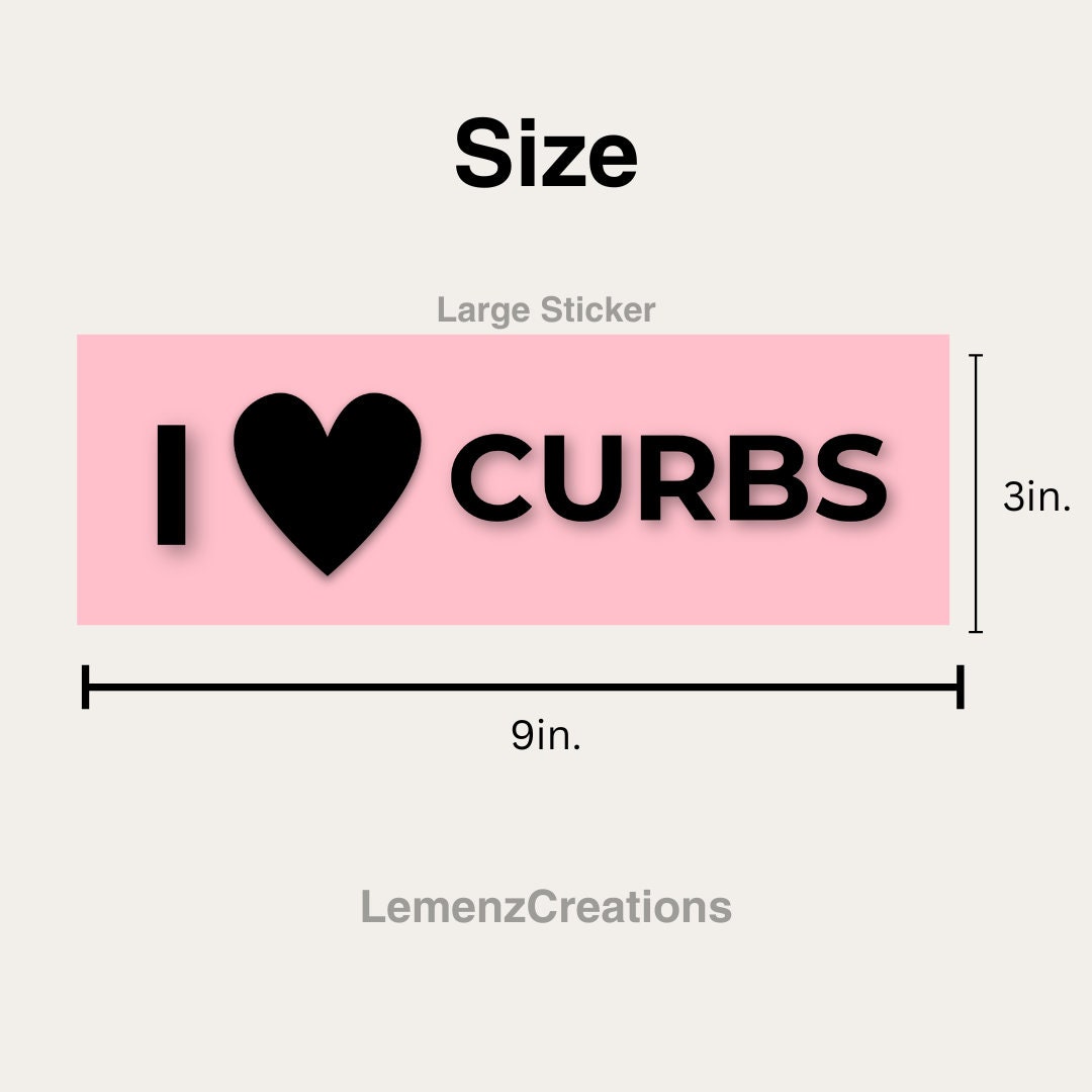 Looking for a funny way to show off your love for curbs? Our "I Love Curbs" bumper sticker is the perfect blend of humor and personality for your vehicle! Made from high-quality vinyl, this playful sticker is designed to withstand the elements, ensuring your ride stays stylish and humorous at the same time.
